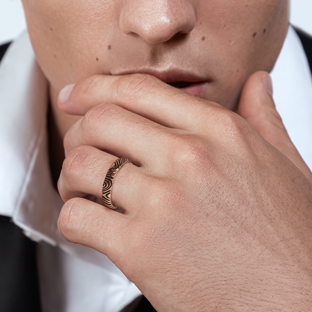La Damasco es una Alianza de oro 18K, inspirada en el arte del acero damasco.