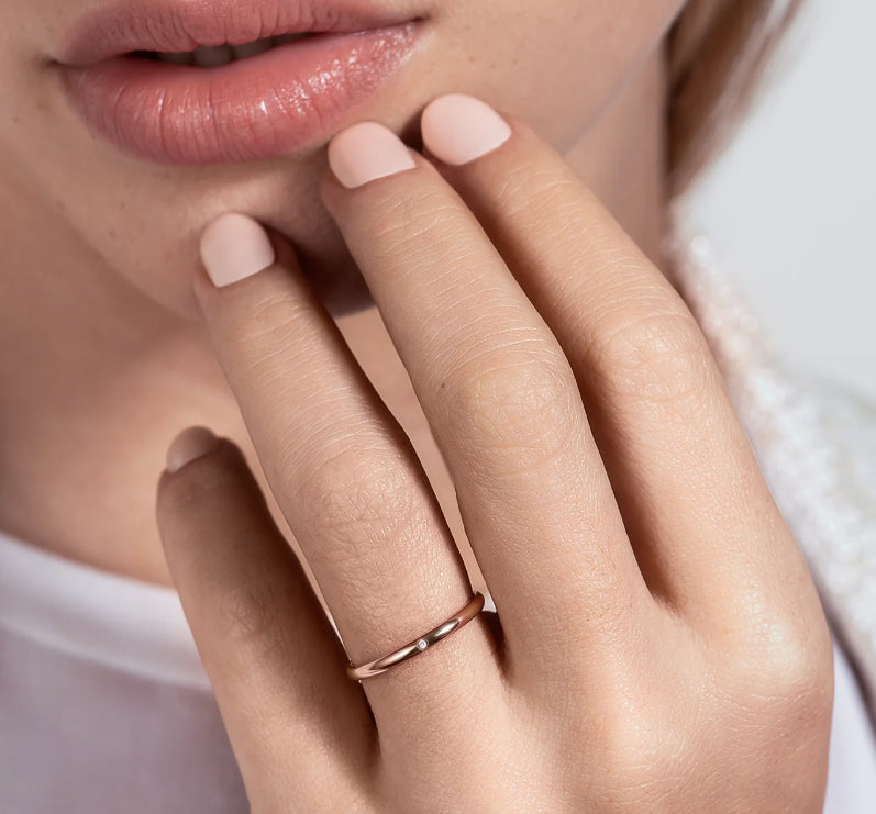 La Venezia Piccola Glam es una Alianza de media caña con una piedra Cubic que se caracteriza por finura y elegancia.