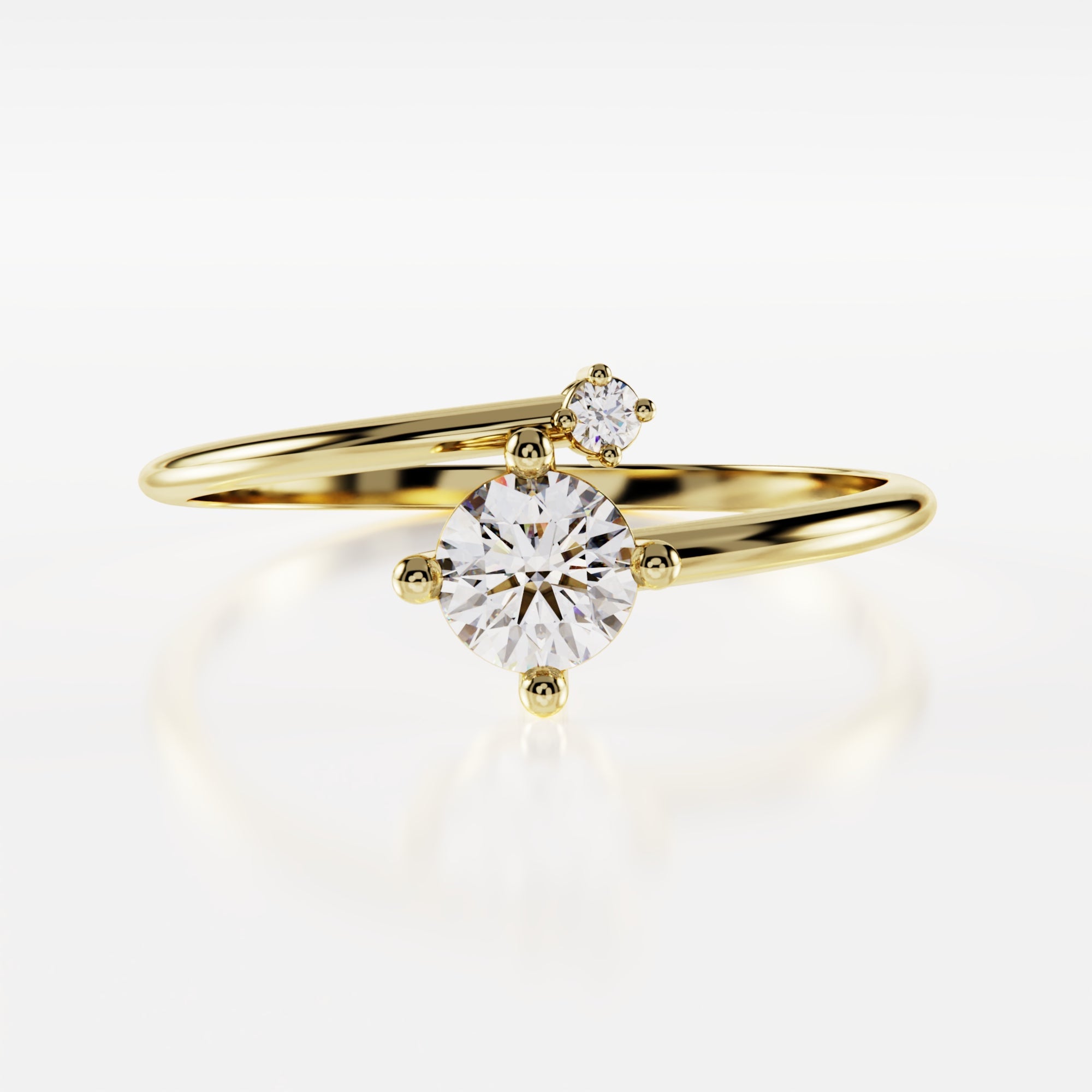 Duetto es un anillo de oro 18k. Podés elegir entre los colores rosa, amarillo o blanco lunar. En el corazón del diseño, un deslumbrante cubic central de corte brillante está acompañado por otro cubic más pequeño, que sigue la curva natural del anillo. Esta configuración única captura la luz desde todos los ángulos, creando un brillo excepcional.