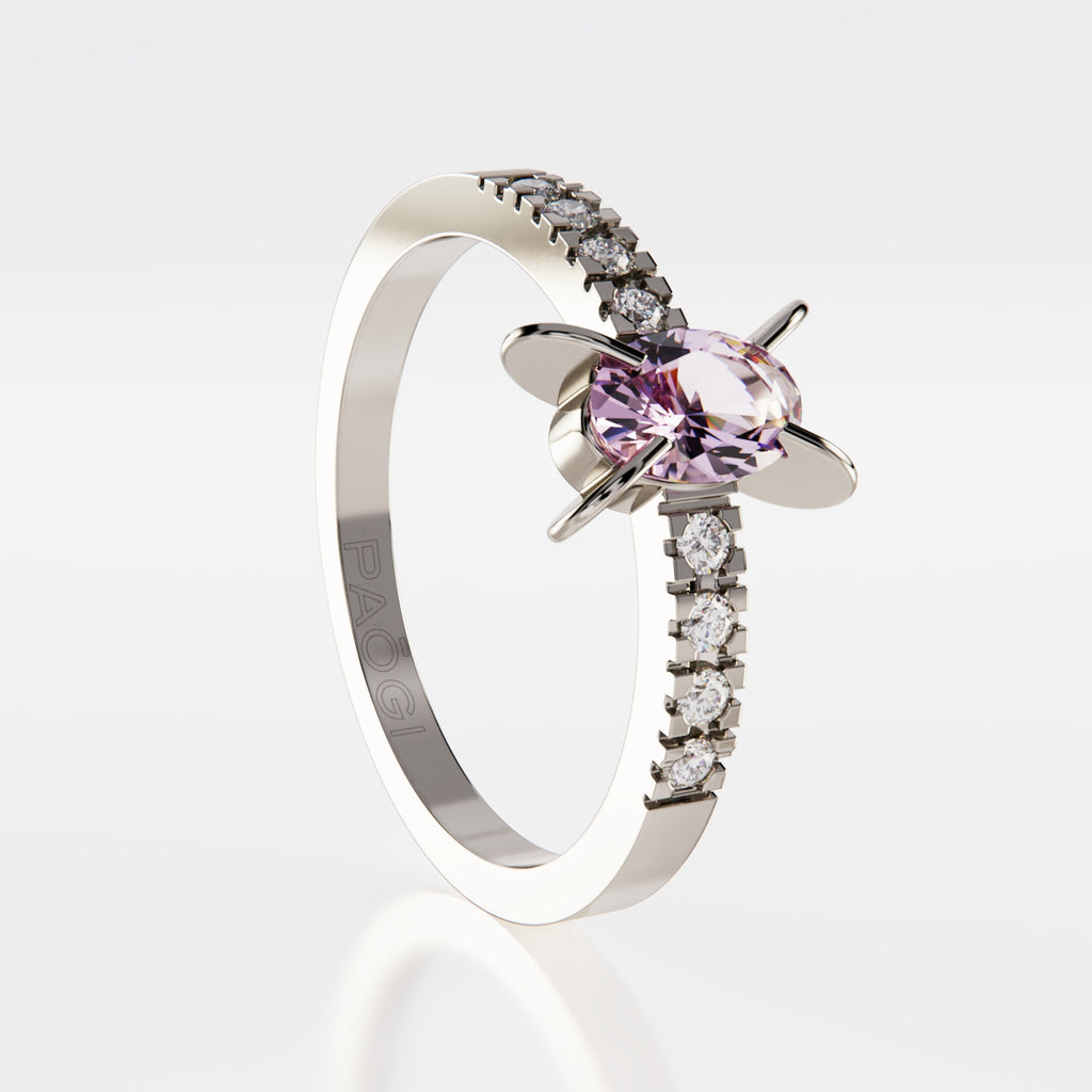 • Piedra: Las piedras son cubics zirconia de distintos cortes: una central talla oval de 6x4mm. y ocho piedras laterales talla brillante de 1.5mm.