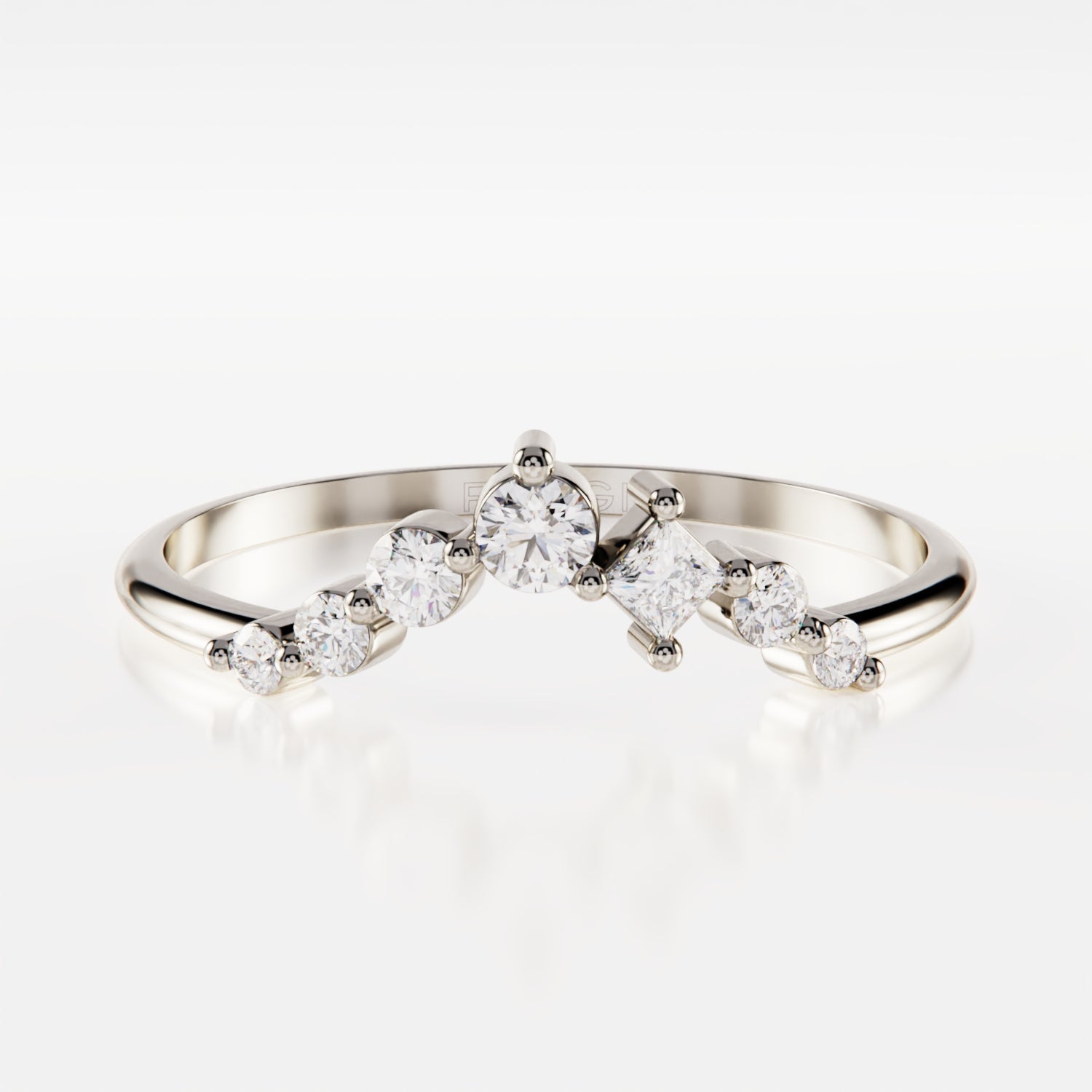 • Piedras: Cuenta con 7 diamantes naturales en total: uno de talla cuadrada de 2x2mm y seis de talla brillante de 1.5mm, 1.8mm, 2mm y 2.5mm de diámetro