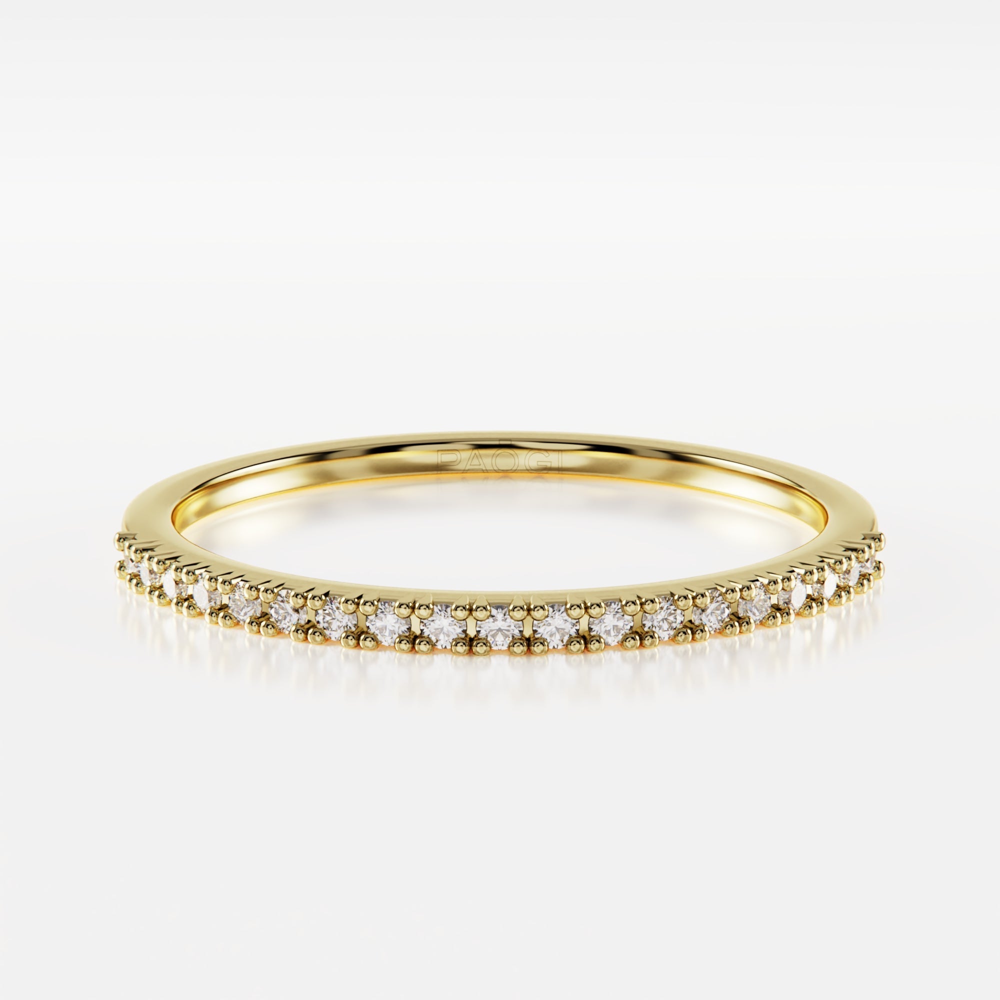 Helena Thin es un anillo de oro 18k. Podés elegir entre los colores rosa, amarillo o blanco lunar. Su banda delgada y refinada presenta una fila continua de diamantes cuidadosamente engarzados para maximizar su brillo y resplandor.
