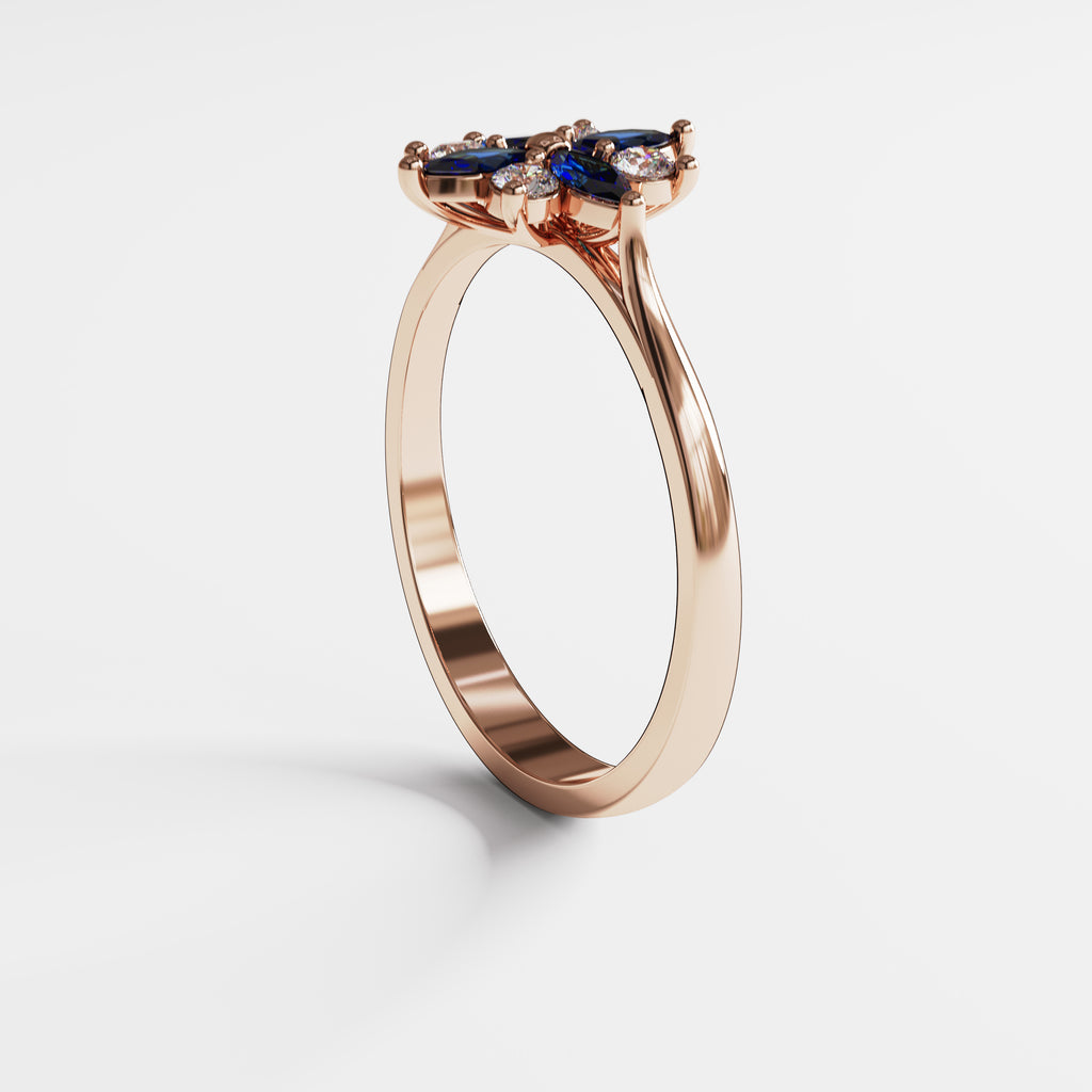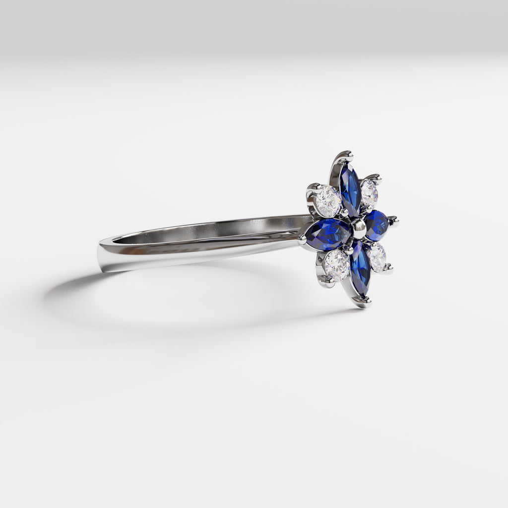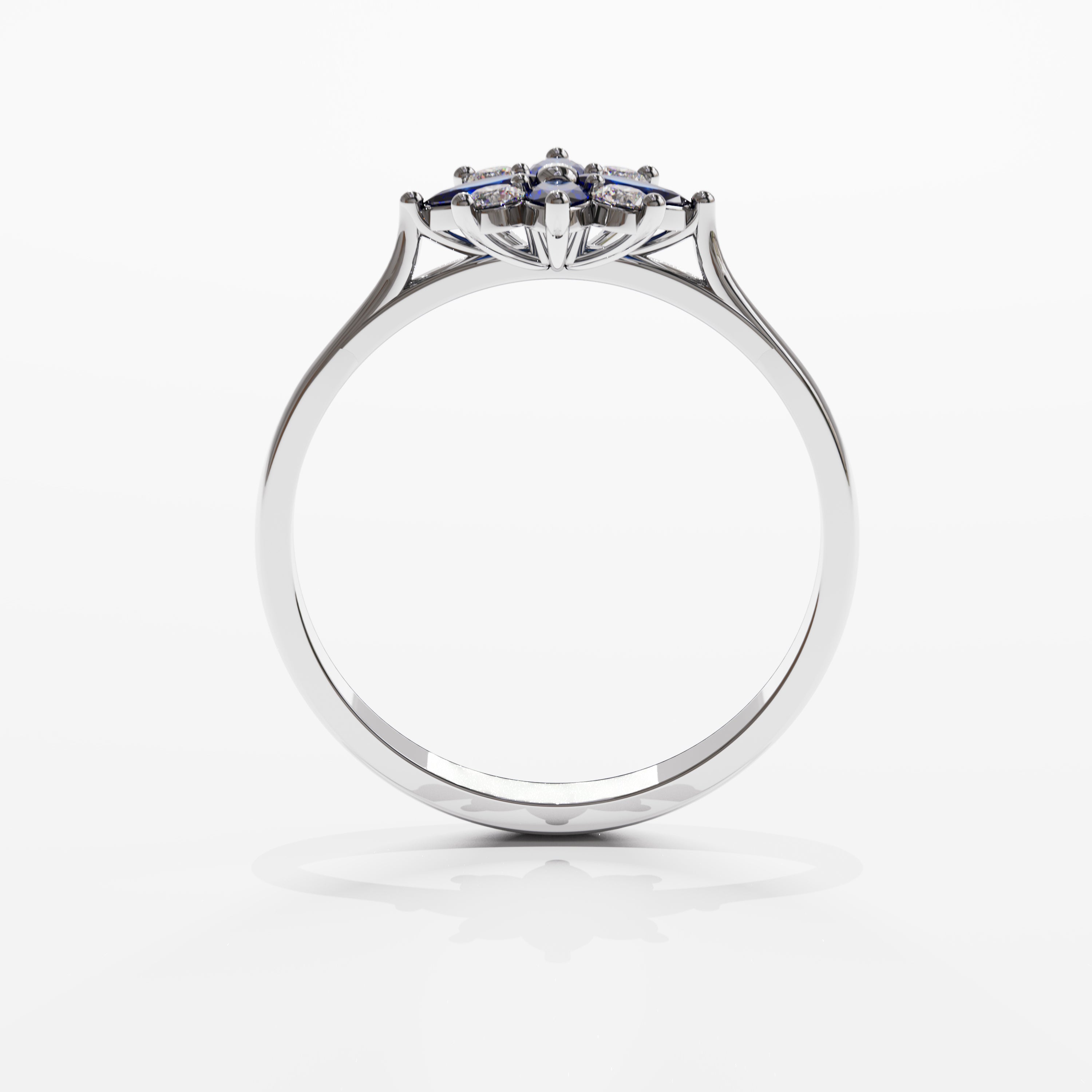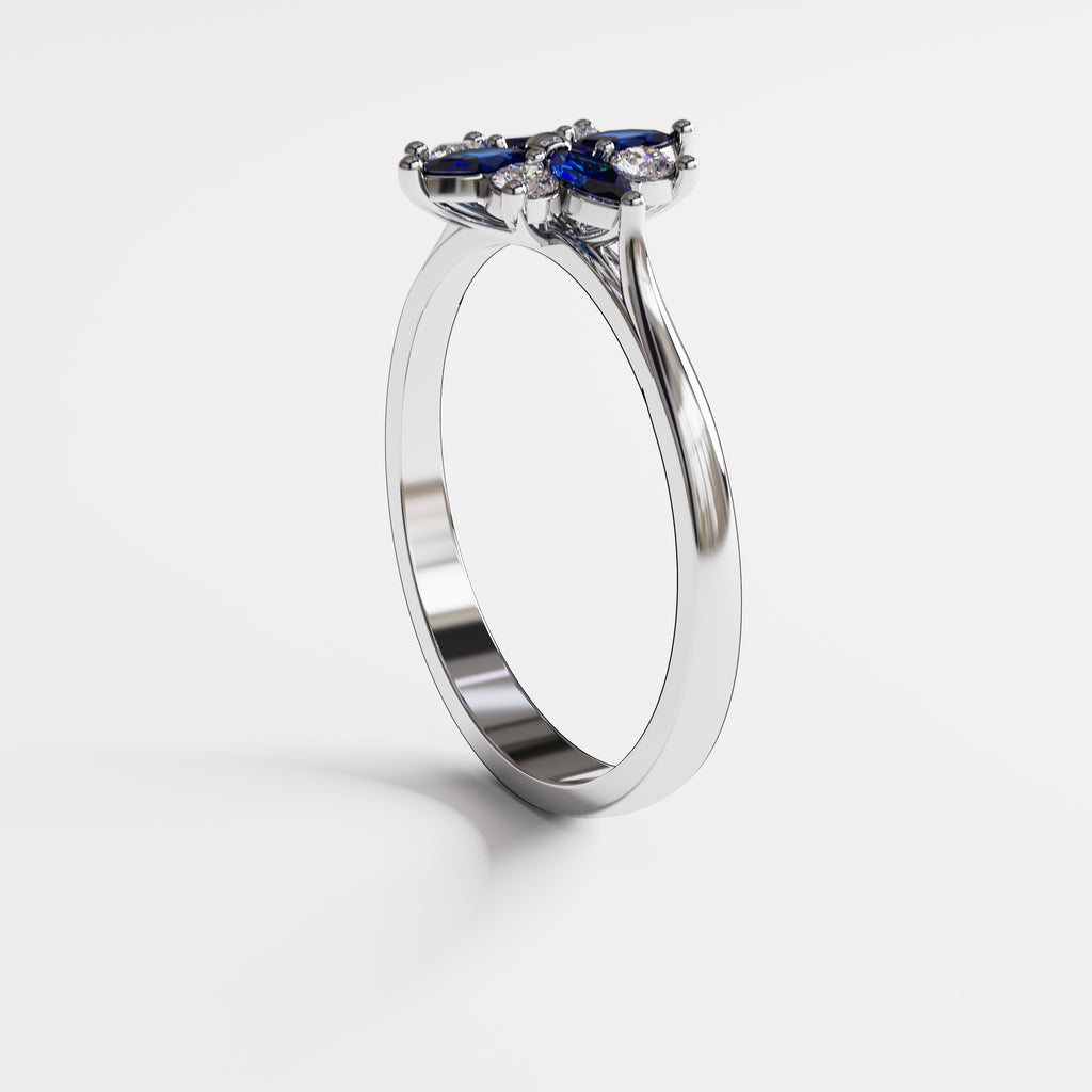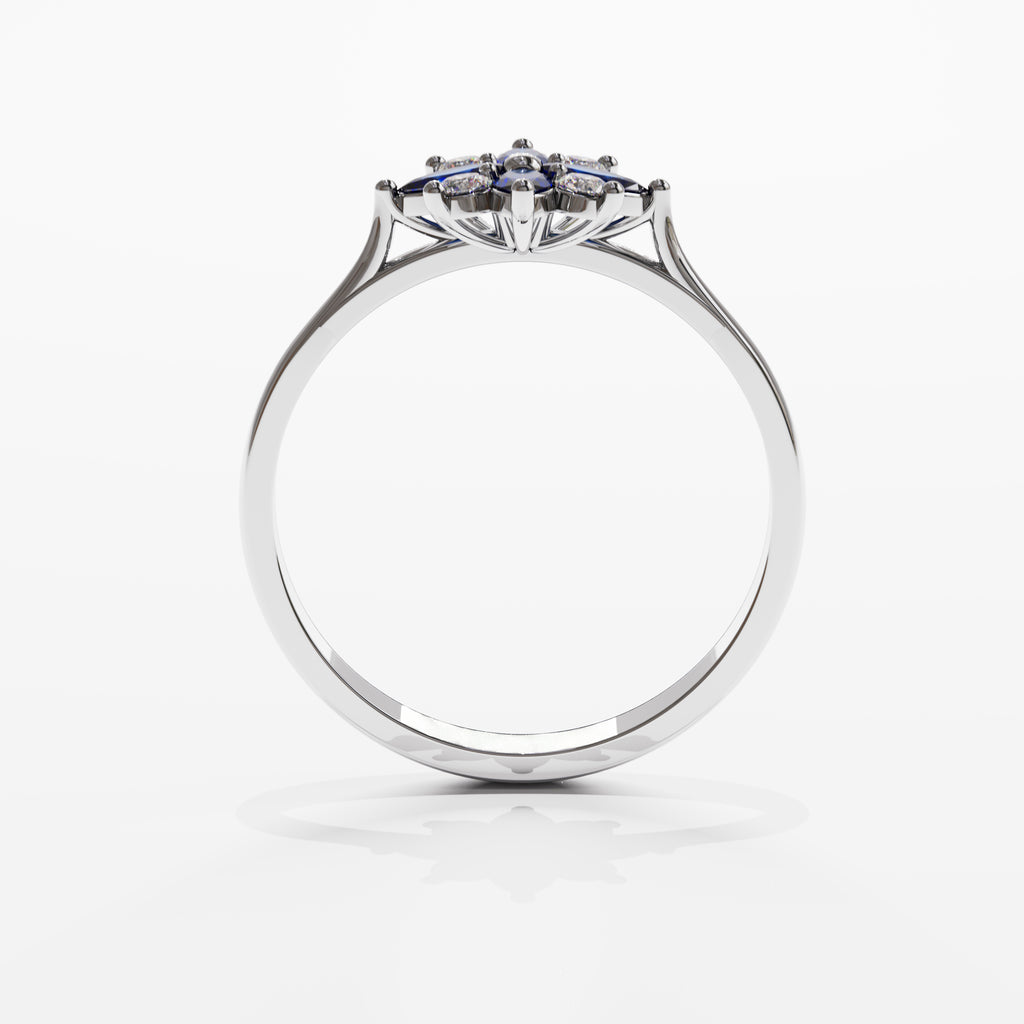 • Piedra: Cuenta con cuatro diamantes naturales talla brillante de 2mm. de diámetro y cuatro zafiros talla navette de 4x2mm. O se puede elegir todas las piedras en diamantes.