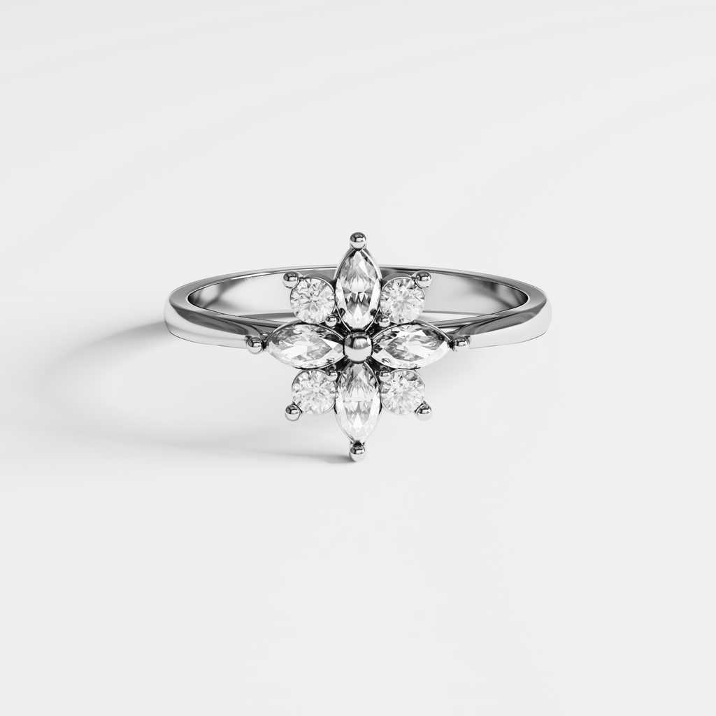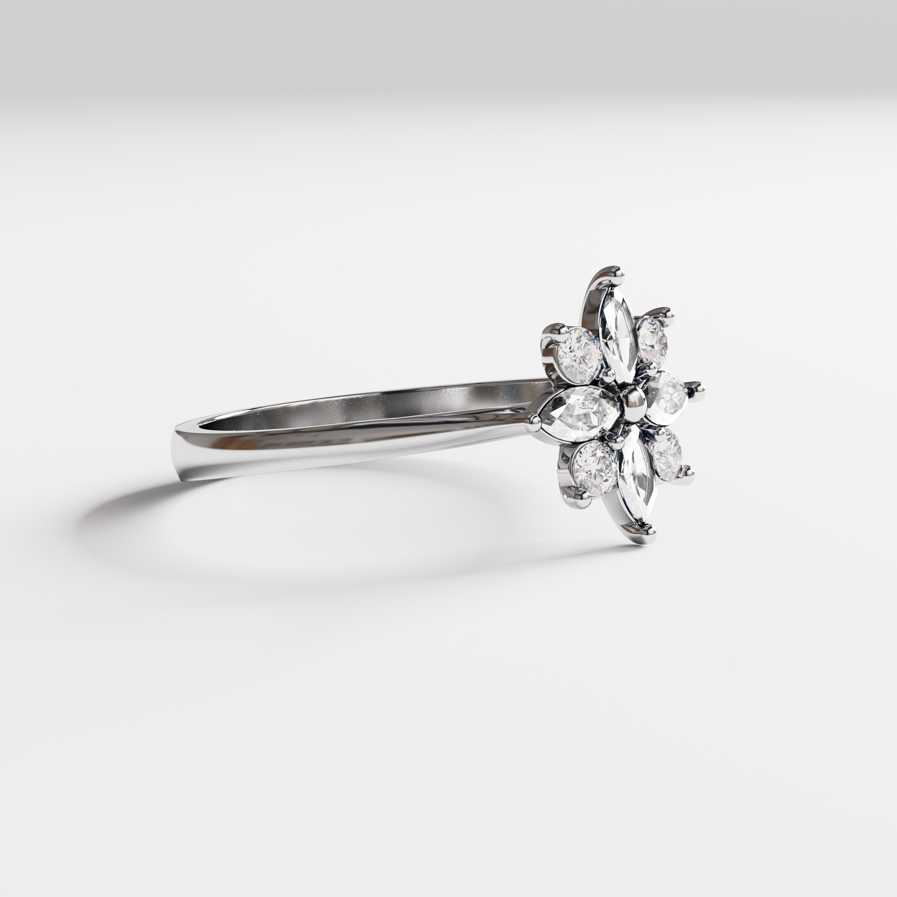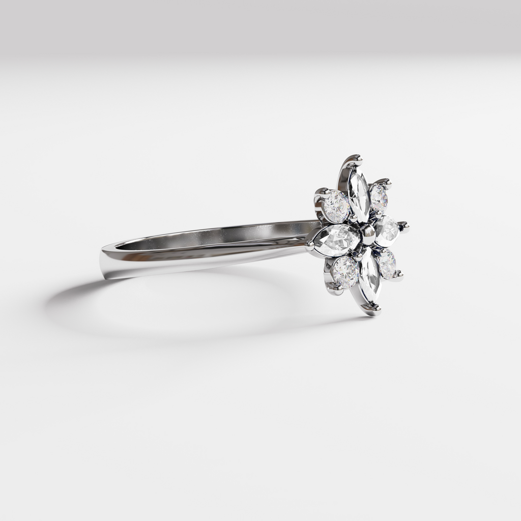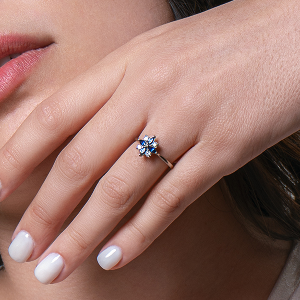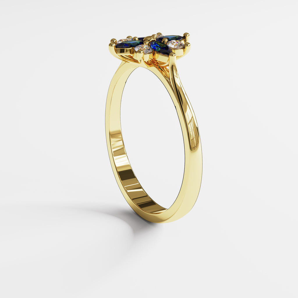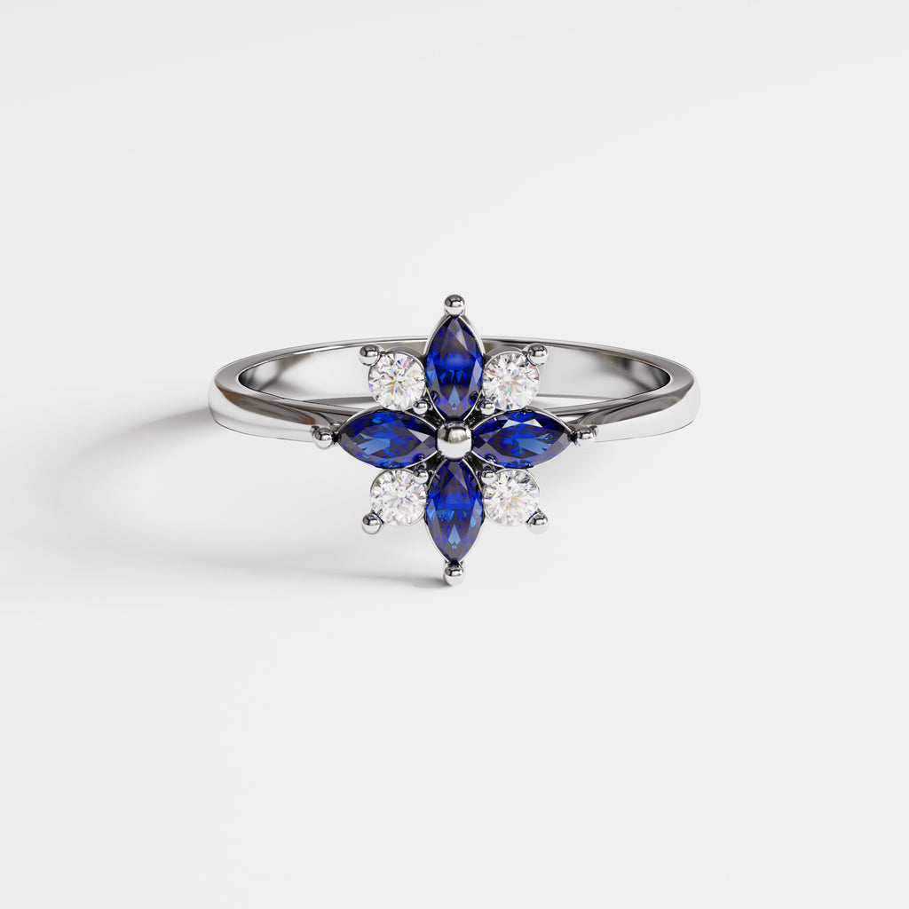 • Piedra: Cuenta con cuatro diamantes naturales talla brillante de 2mm. de diámetro y cuatro zafiros talla navette de 4x2mm. O se puede elegir todas las piedras en diamantes.