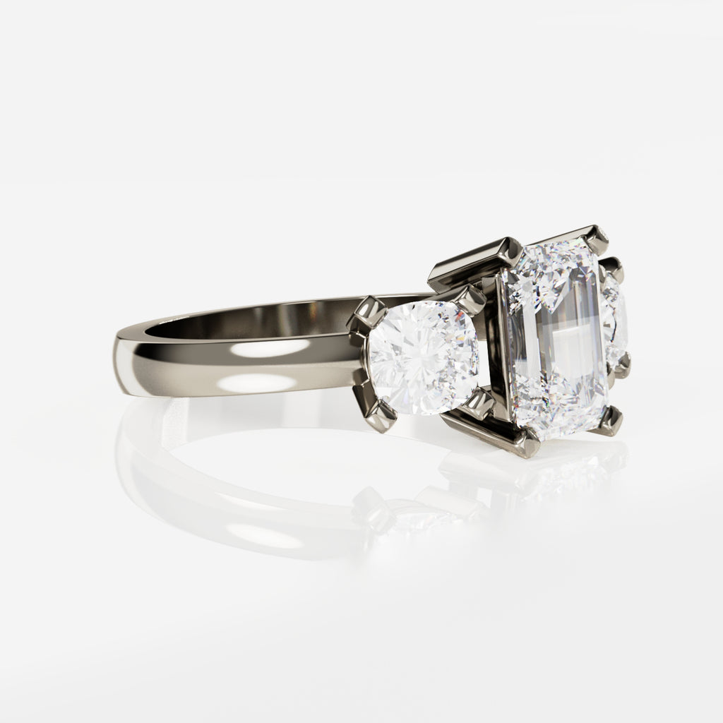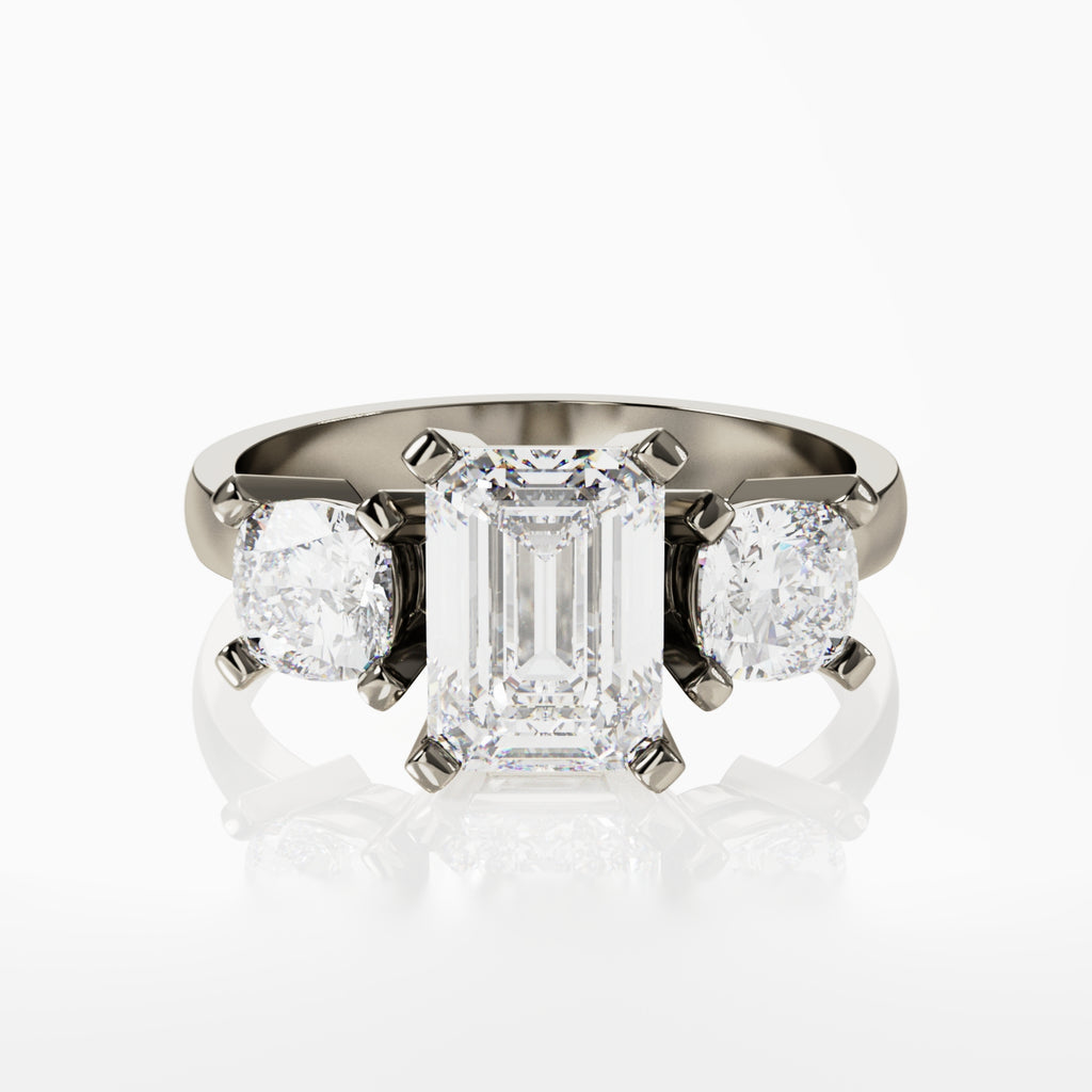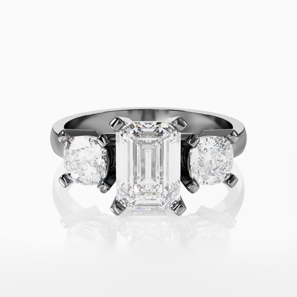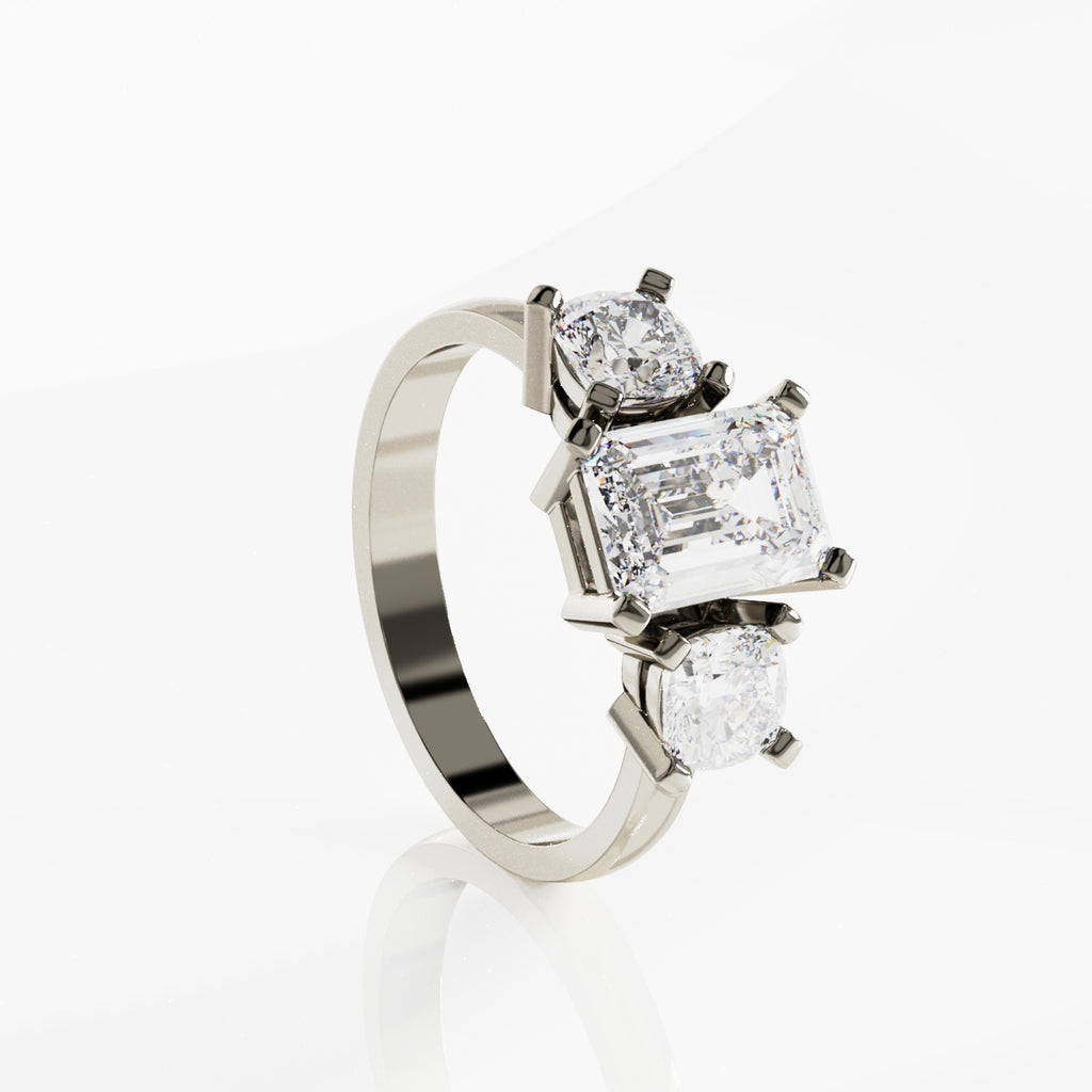• Piedra: Cuenta con un diamante de laboratorio central talla Cushion de 7x5mm y dos cubic zirconia a sus laterales.