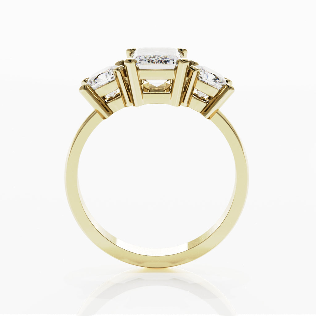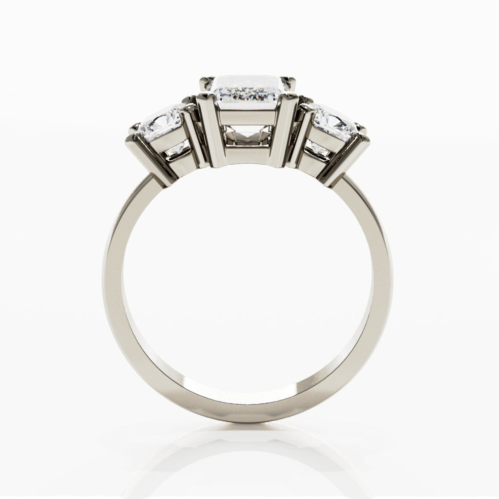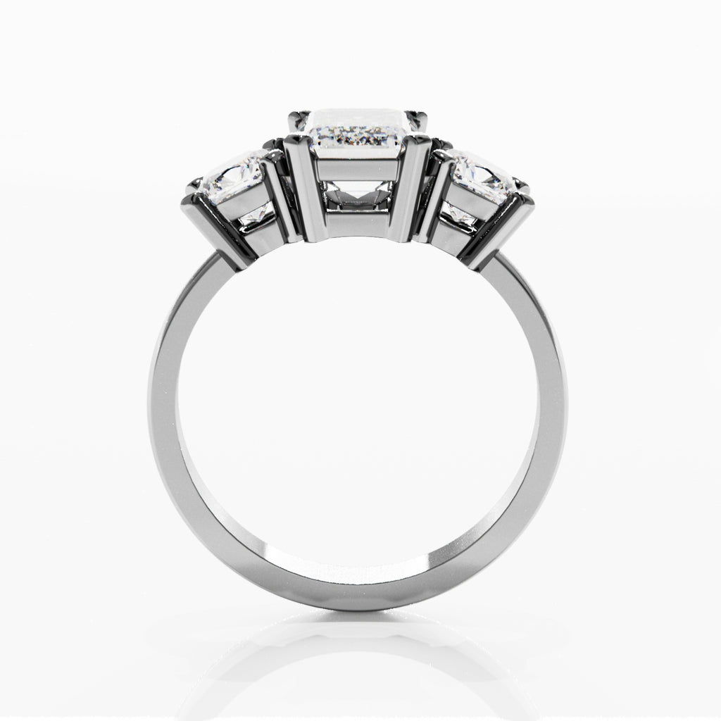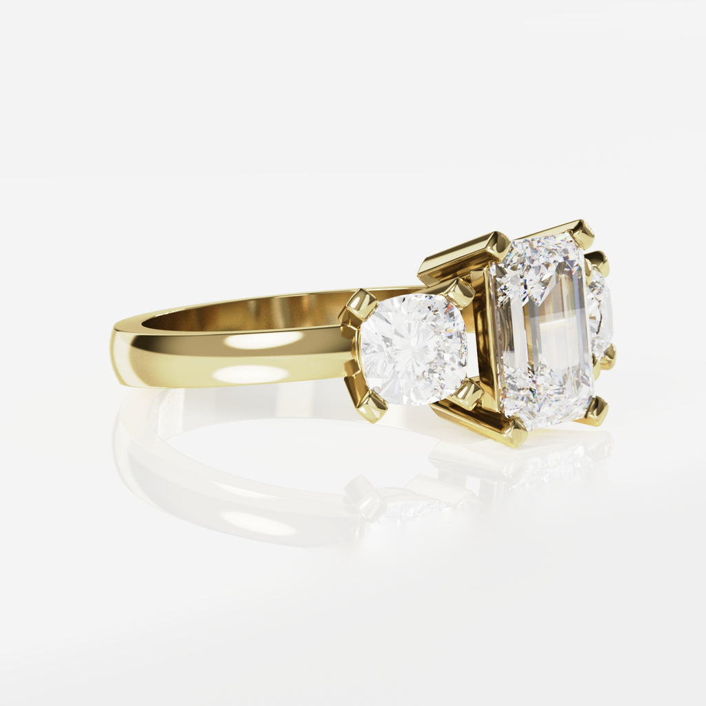 • Piedra: Cuenta con un diamante de laboratorio central talla Cushion de 7x5mm y dos cubic zirconia a sus laterales.