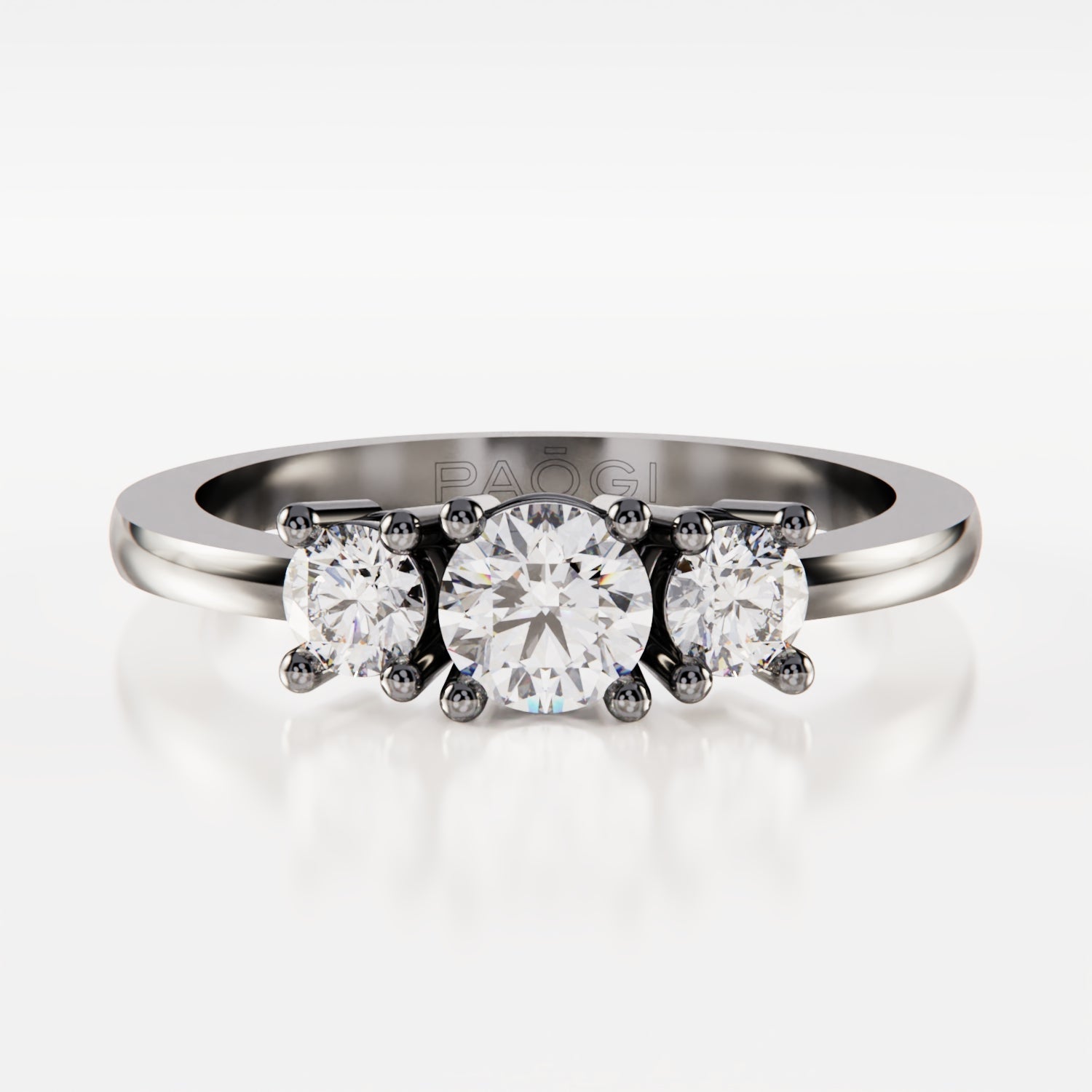 • Piedra: Las piedras son cubics zirconia talla brillante: una central de 4.5mm y dos piedras laterales de 3.25mm de diámetro.