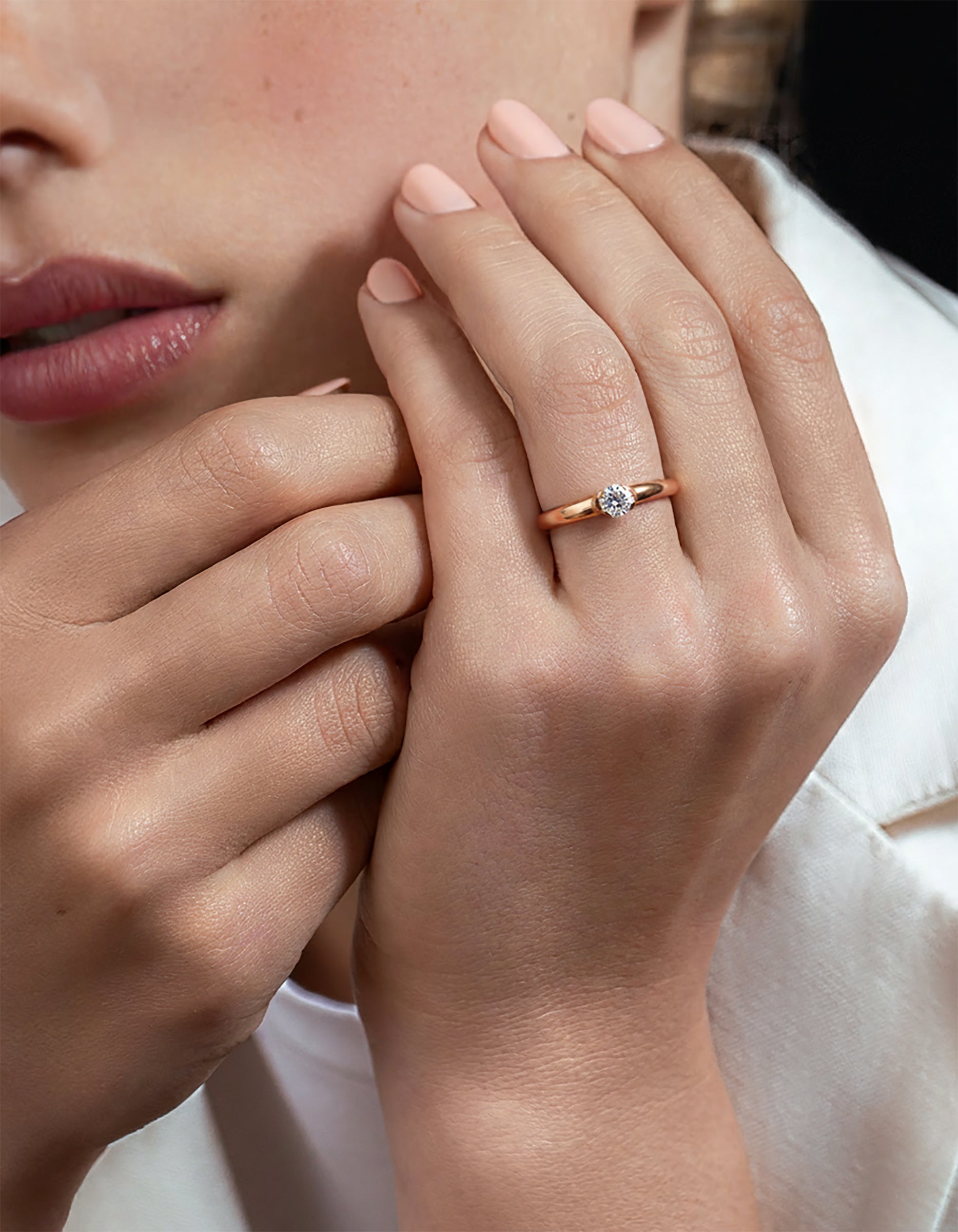 El anillo Calidia es una de nuestros anillos solitarios. El mismo lo podes elegir en distintos Oros 18k.