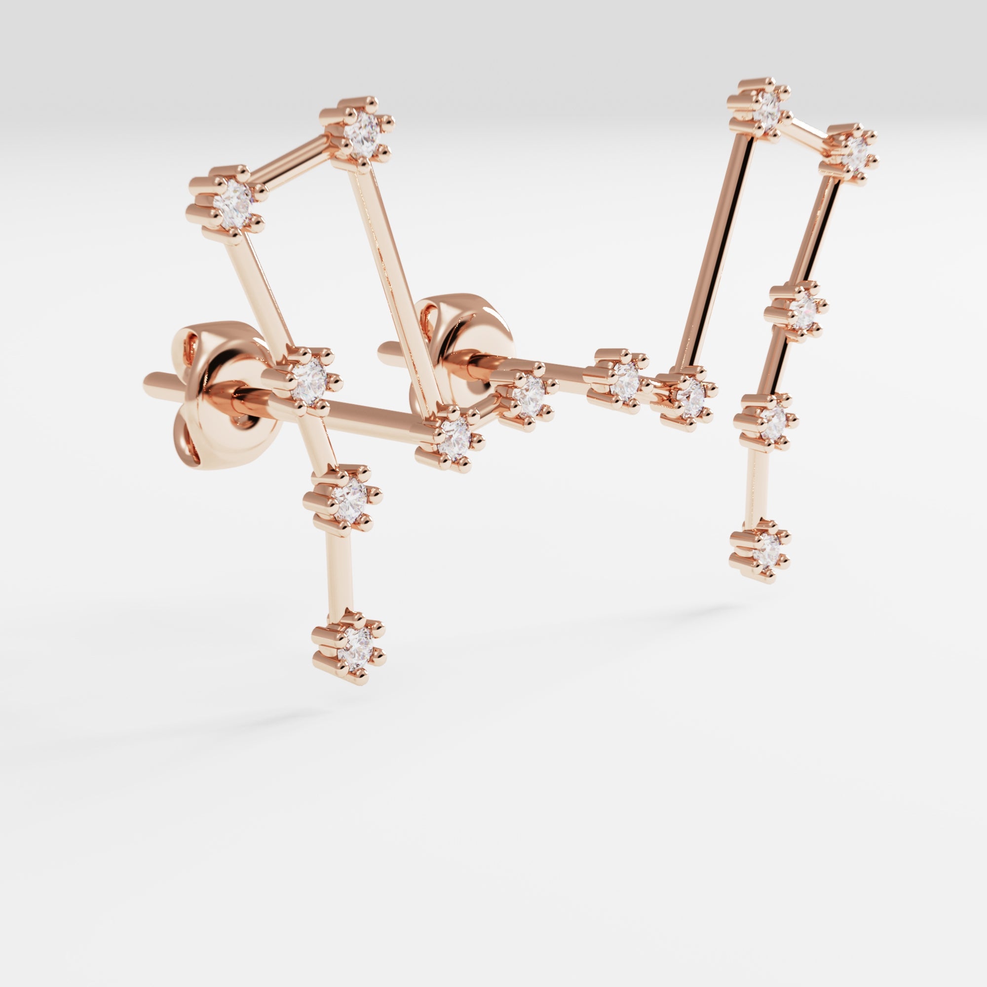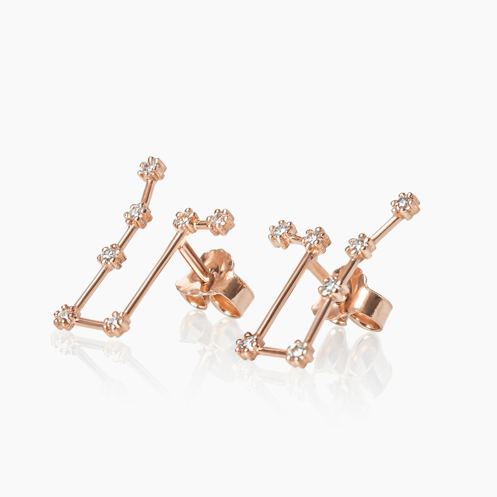Los Géminis Stone son aros trepadores de oro rosa 18k, inspirados en la constelación de Géminis.