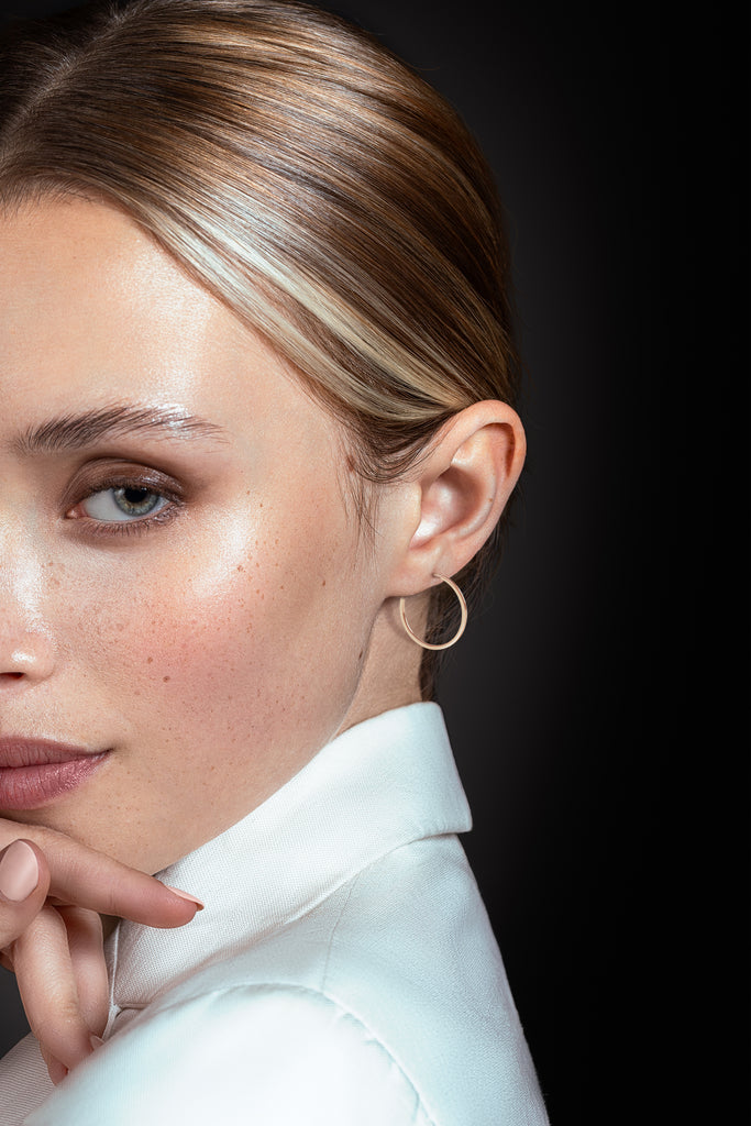 Los Oba Cuadrado son aros de oro 18k disponible en las tonalidades amarillo y rojo. Su diámetro es de 21mm. El peso del par es de aproximadamente 1,2gr.