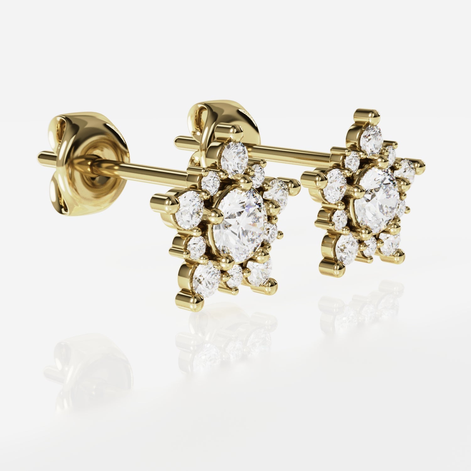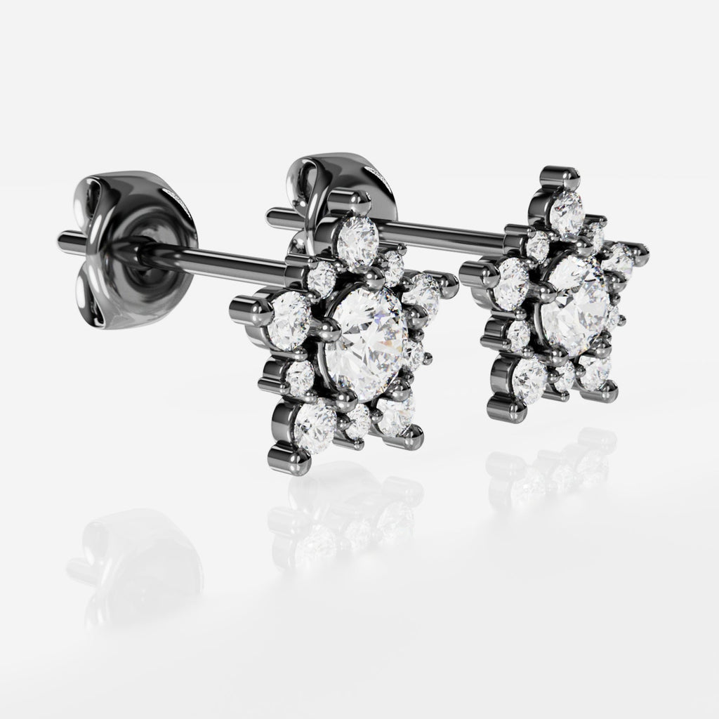 Cada aro cuenta con 11 piedras cubic zirconia: una central de 4mm y 10 de 1.25mm y 2mm de diámetro. El peso del par es de aproximadamente 3gr.