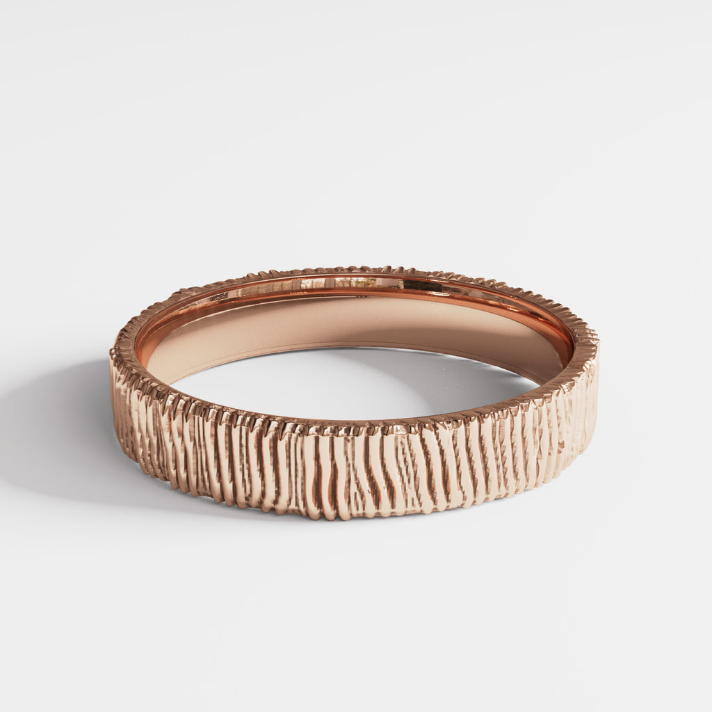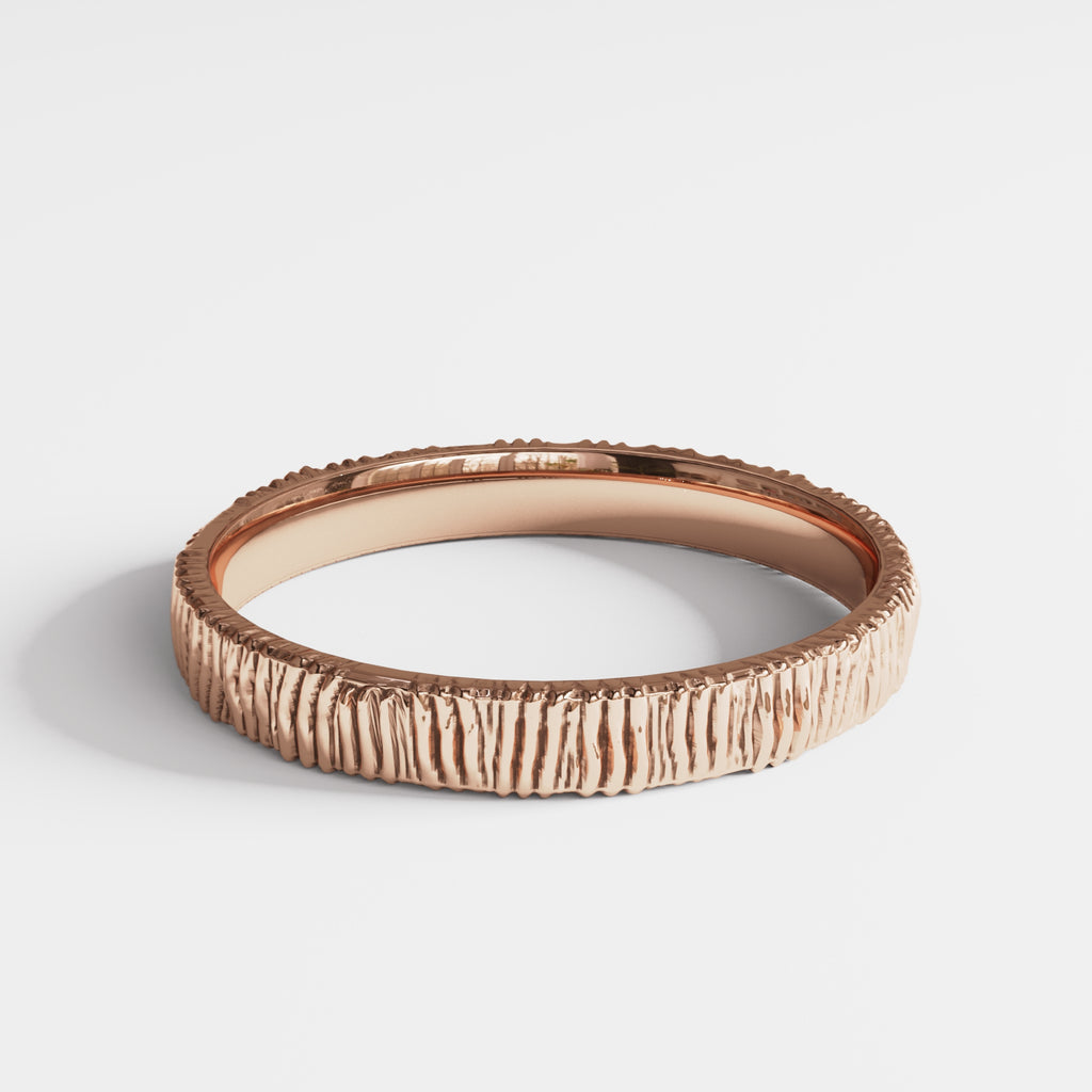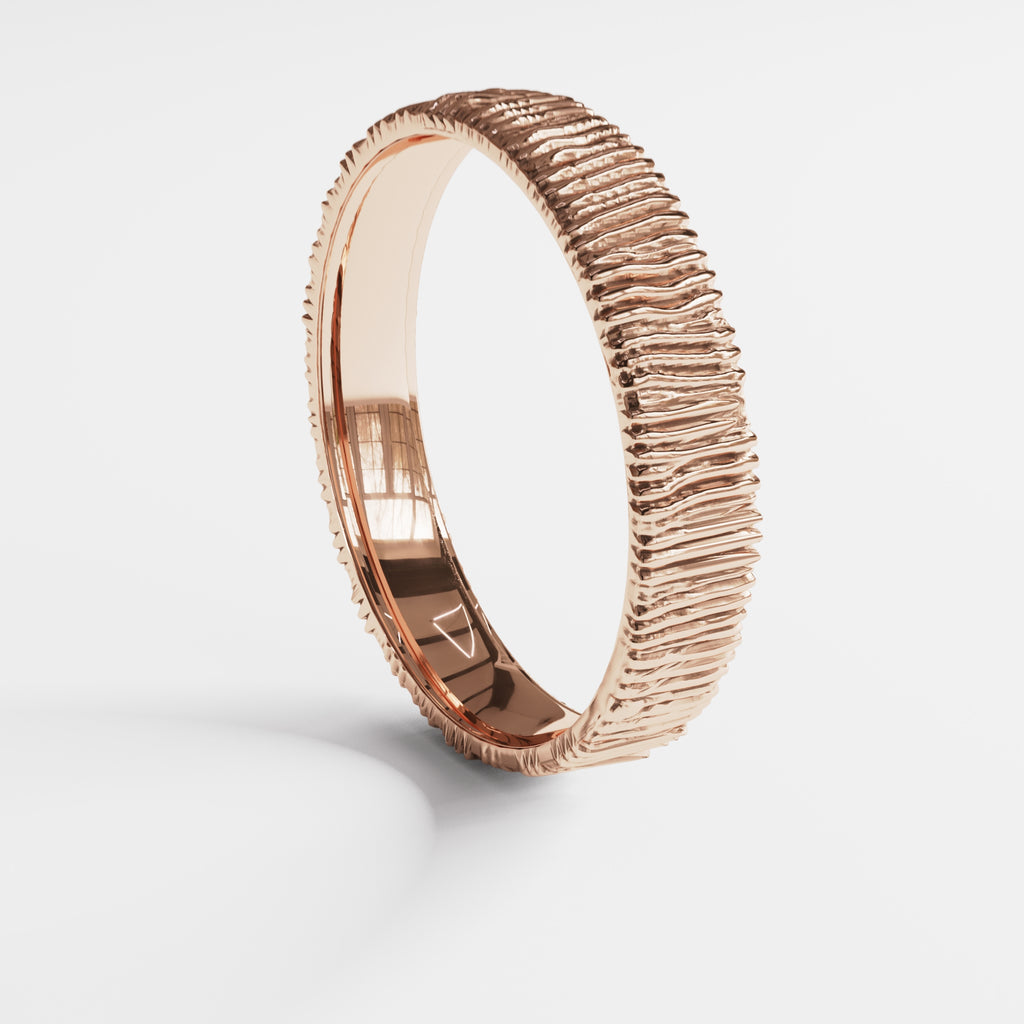 La Corteza es una Alianza de oro 18K, inspirada en la textura orgánica de la corteza de los árboles.