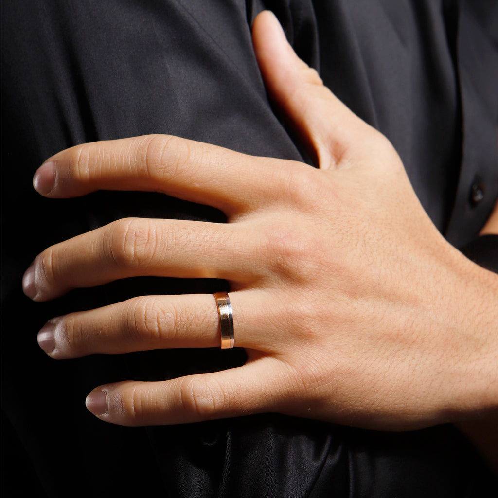 La Alianza Misia es una cinta que combina de 2 colores de metales preciosos y se puede hacer en distintos Oros 18k.