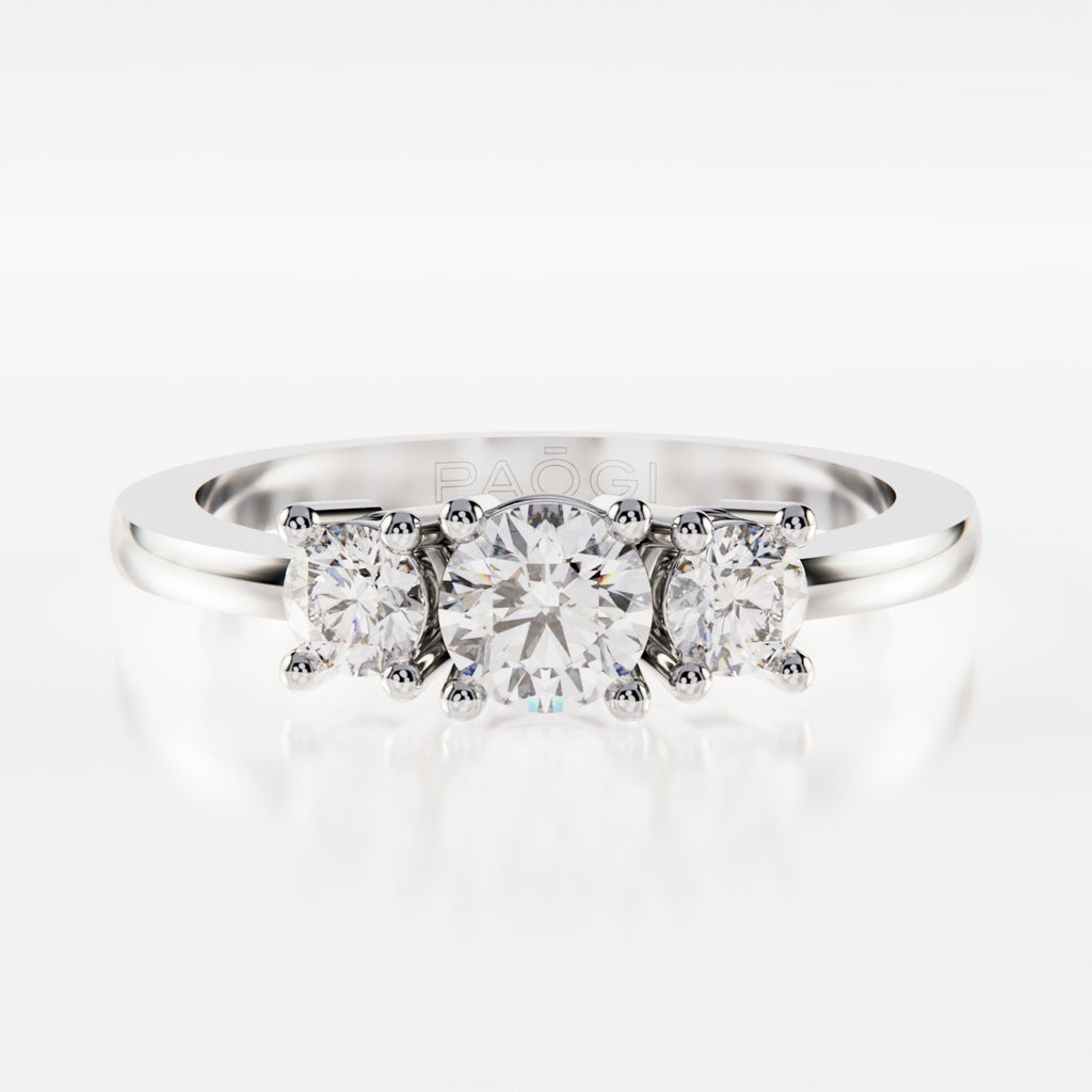 • Piedra: La combinación de piedras incluye 2 cubic zirconia talla brillante de 3.25mm. de diámetro en los laterales y, en el centro, un diamante de talla brillante de 4.5mm. de diámetro, que bien puede ser natural como de laboratorio.