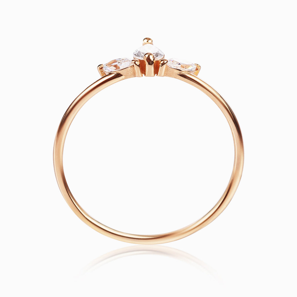 • Piedra: Las piedras son cubics zirconia, siendo la central de talla pera de 5x3mm y las laterales talla navette de 4x2mm.