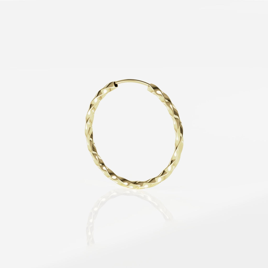 Oba Torzado es un piercing de oro 18k disponible en las tonalidades amarillo y rojo. Su diámetro es de 13mm. El peso es de aproximadamente 0,3gr.
