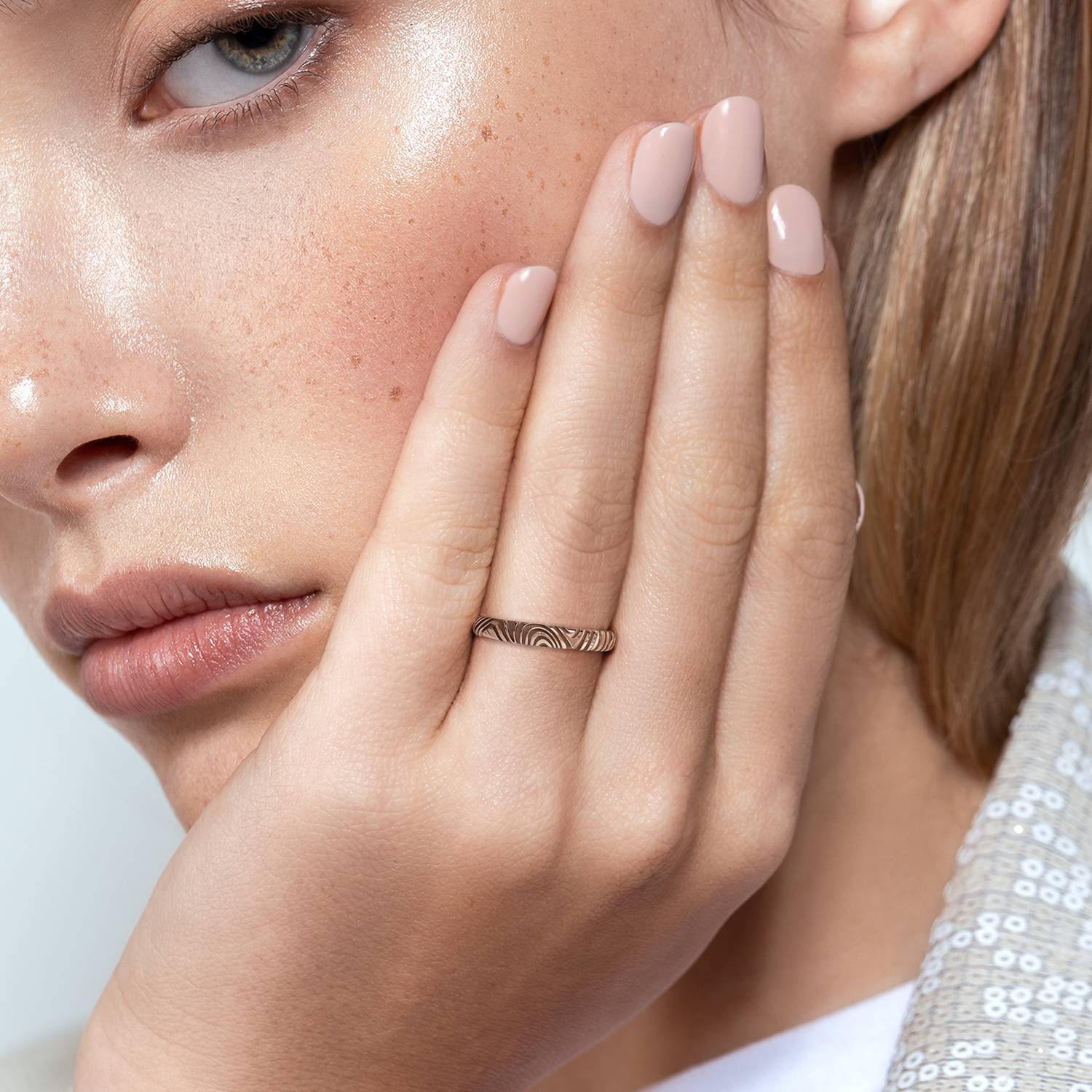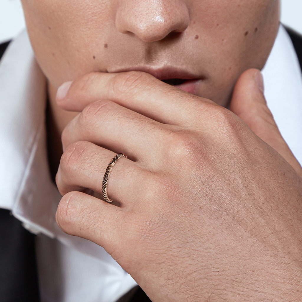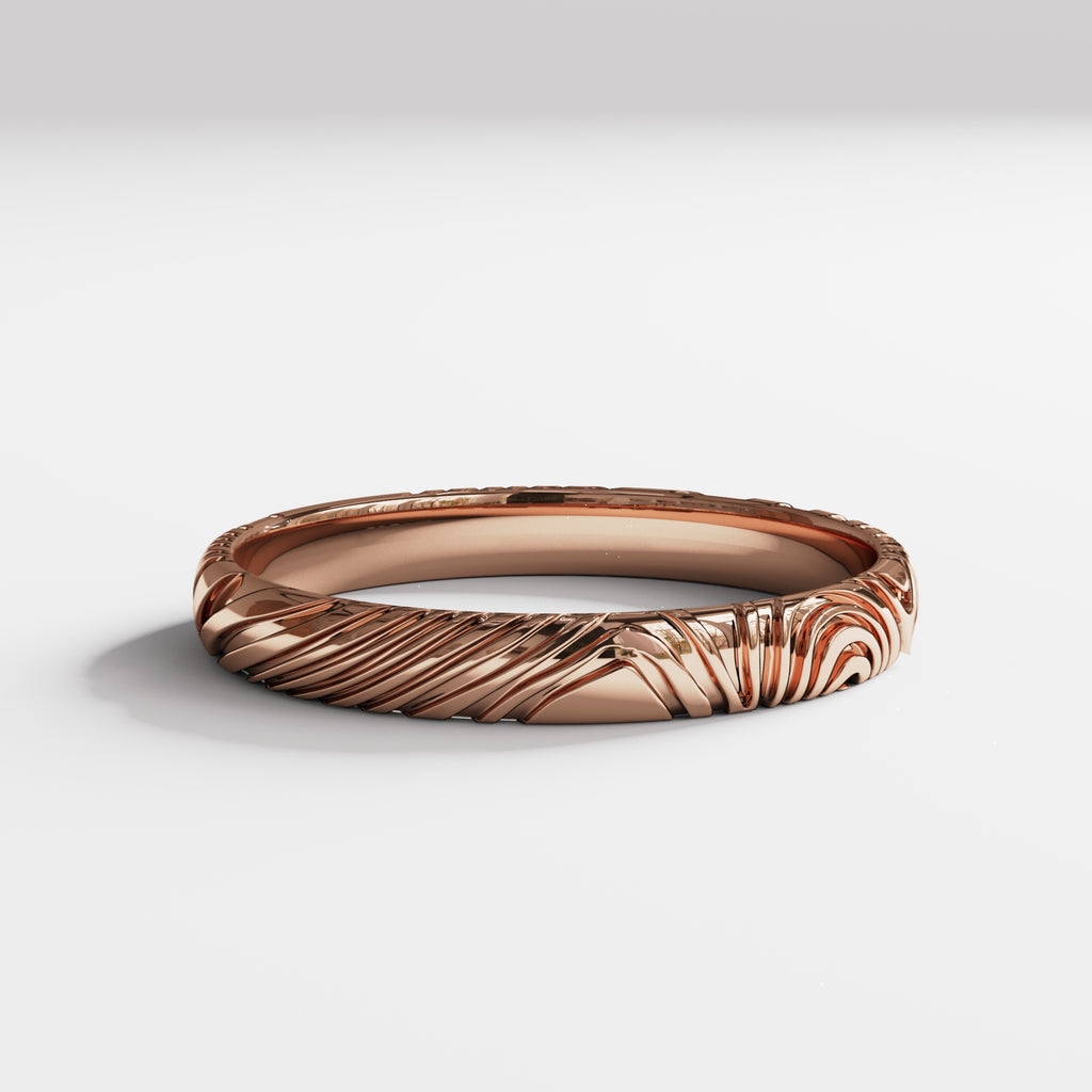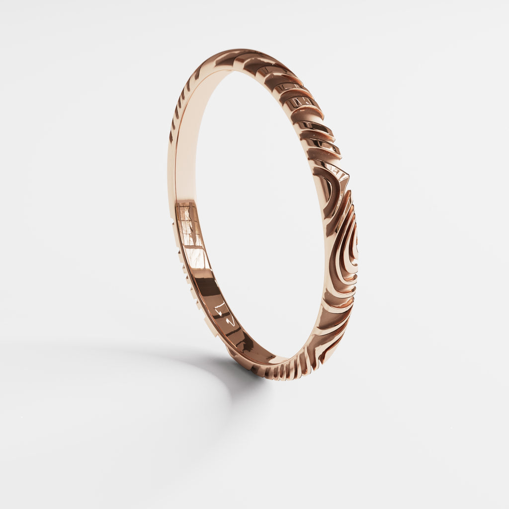 La Damasco es una Alianza de oro 18K, inspirada en el arte del acero damasco.