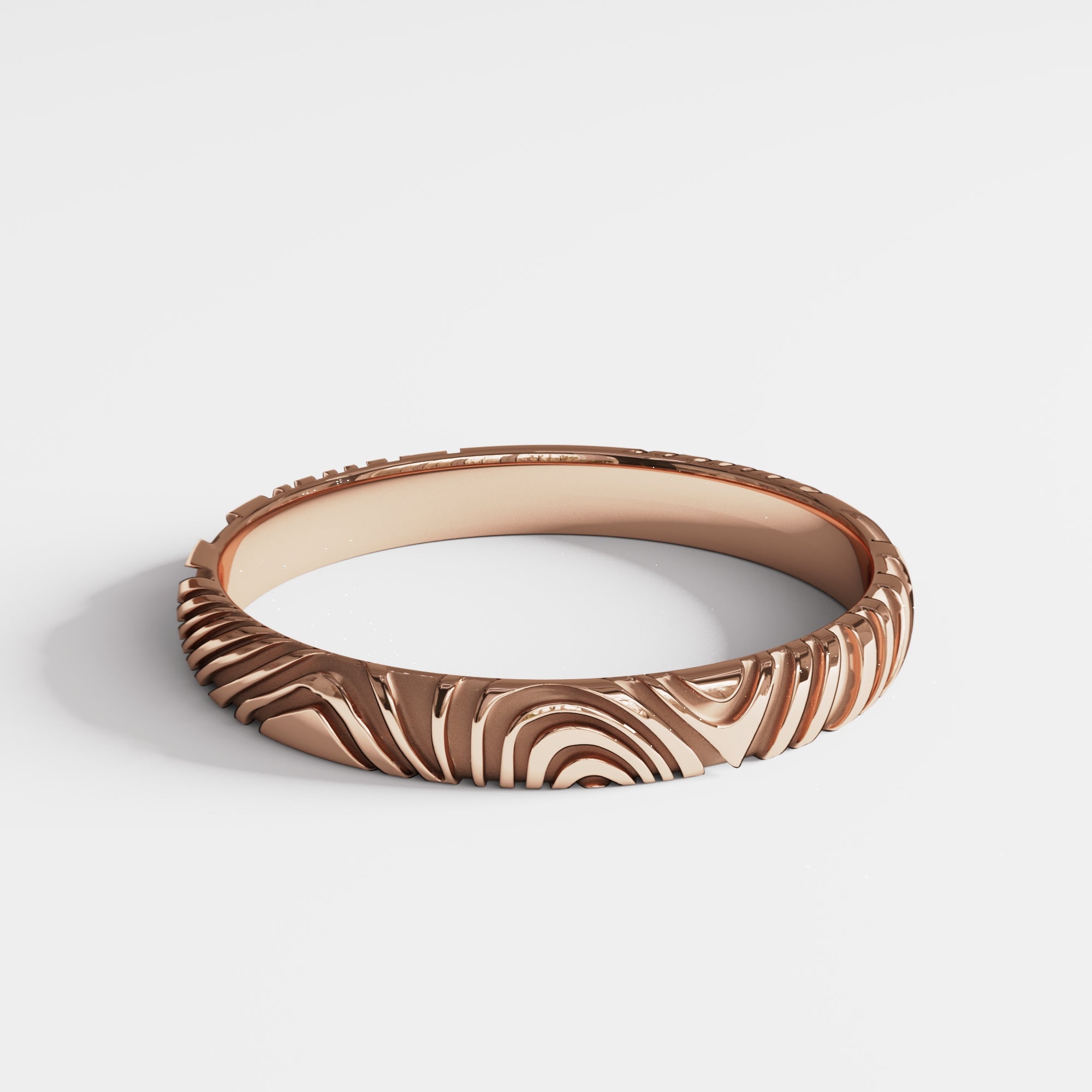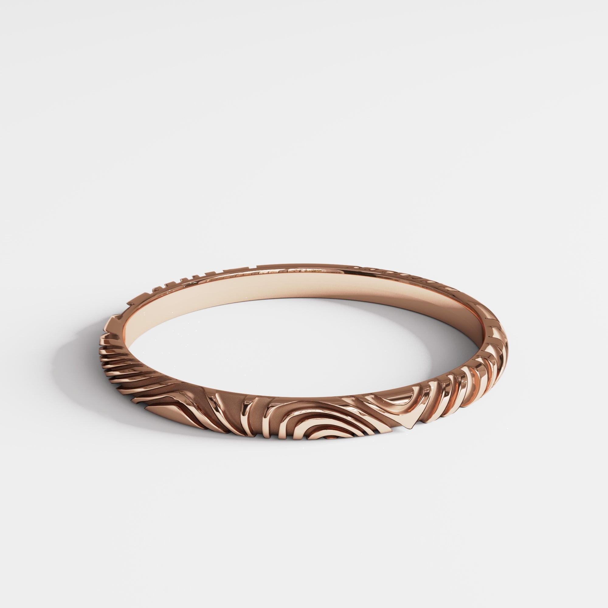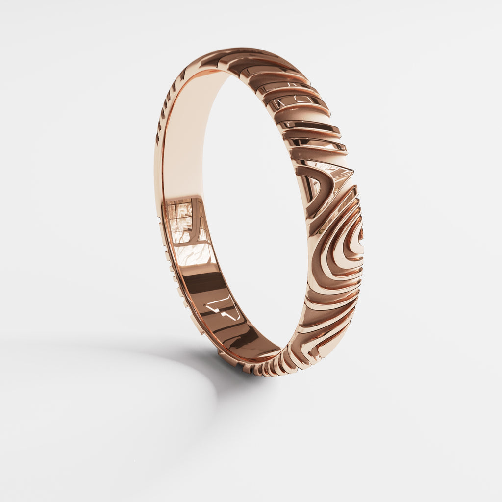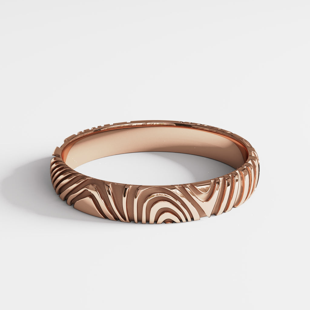 La Damasco es una Alianza de oro 18K, inspirada en el arte del acero damasco.