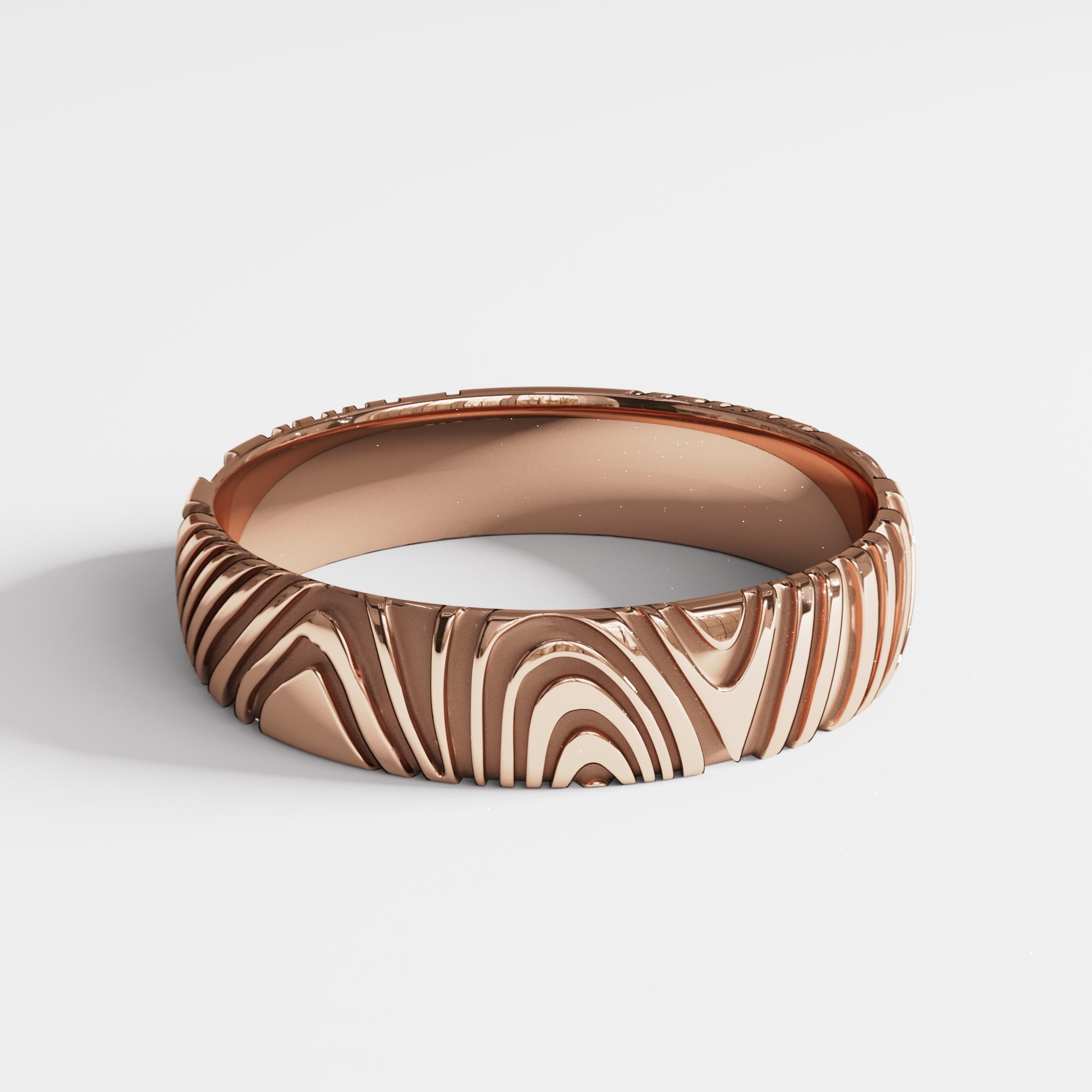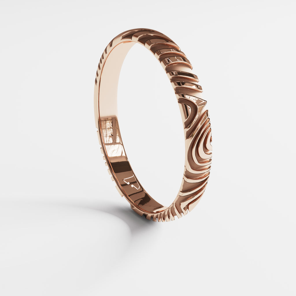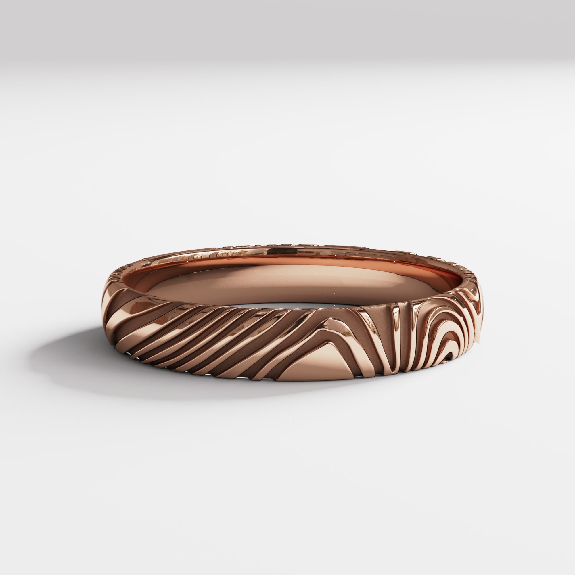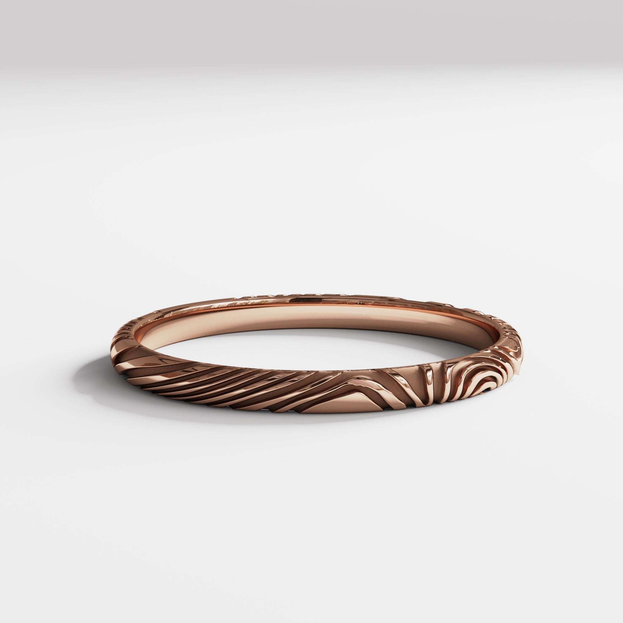La Damasco es una Alianza de oro 18K, inspirada en el arte del acero damasco.