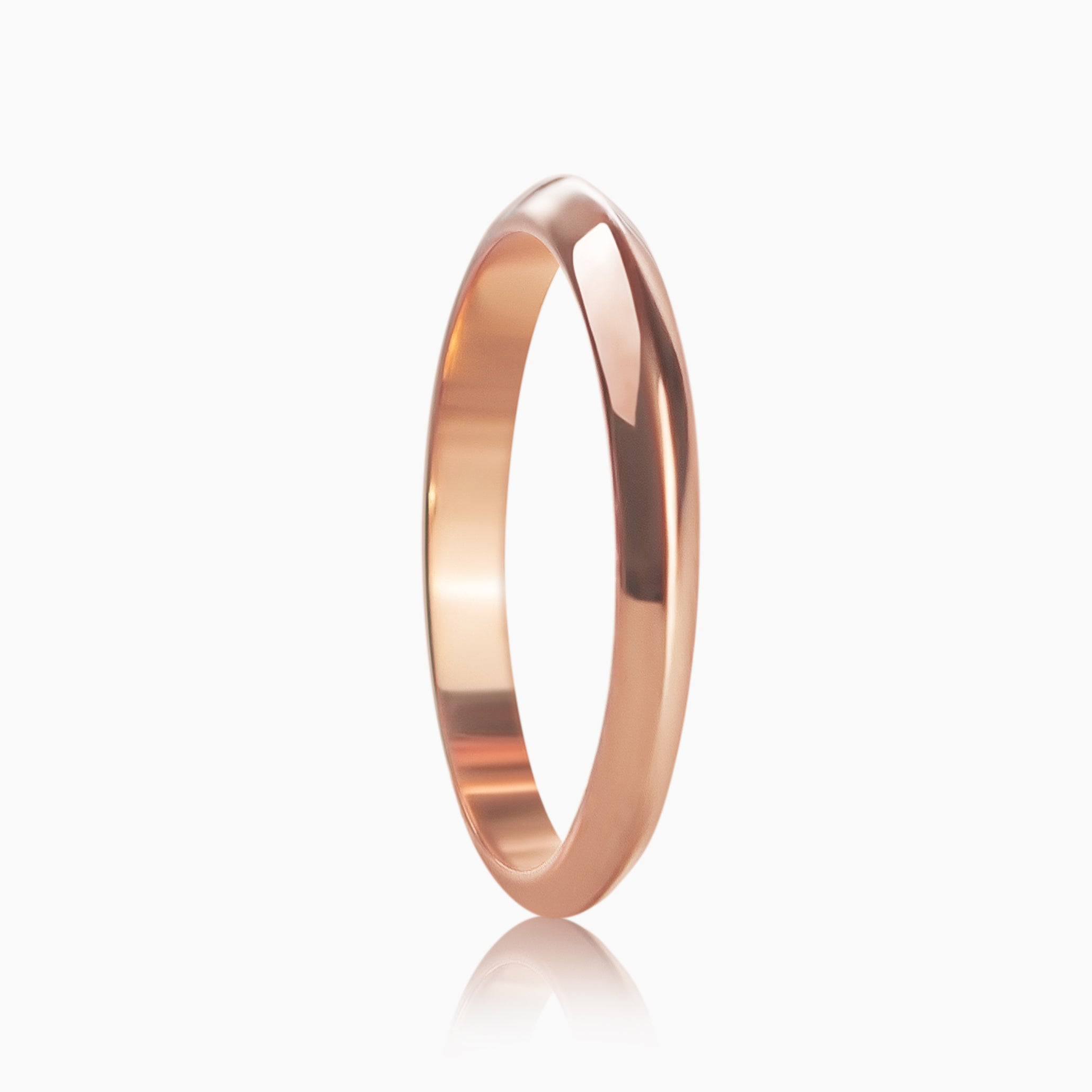 La Mallorca es una alianza de oro rosa 18k que se caracteriza por una línea en el centro.
